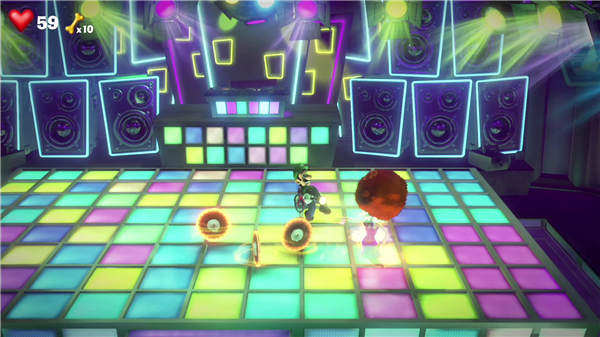 一路前进就可进入BOSS战,也是比较麻烦的一个 舞群分成三组,当中随机有一位是动作慢了约0.5秒的,要仔细观察才看到 发现时靠近用L+R攻击,它会掉出按钮进入第二阶段 看准哪个捡起,并追着他靠近按L+R攻击,它们的脚旋转完后,落地是比较好的时机 当命中时它会落地,立即照射攻击便可 第三阶段,避开掉出来的黑胶唱片后BOSS会伸手指,此时便是L+R时机 最后部份也可用L+R来推开BOSS自转攻击,重复几次攻势后便战胜