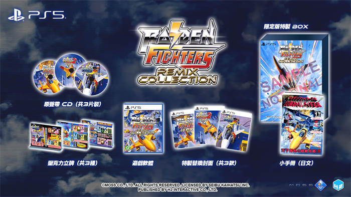 追加收录30 首由知名音乐人制作的重混曲目 《雷电战机Remix Collection》参与了以下作曲家与乐团参与制作: Hosoi Soshi(代表作:《死亡微笑(DeathSmiles)》、《音速战机(Aero Fighters)》、《Raiden IV x MIKADO Remix》等) Arai Yuki(代表作:《幻梦境Deep One(Deep One – Zero to Mugen no Fragment)》、《爱上火车- Last Run!!-(Maitetsu Last Run!!)等) Tsurukubo Kazushi(代表作:《雷电III x MIKADO MANIAX(Raiden III x MIKADO Maniacs)》、《雷电IV × MIKADO remix(Raiden IV x MIKADO Remix)》等) 细井宗志 鹤久保一志 同时收录原版本与国际版本 本作同时收录了仅在日本推出的原版日文版本,以及在海外推出的国际版本。两版本在语言和关卡构成等方面存在差异,因此即使是同一个游戏名称,也能体验到不同的乐趣。三款作品可一起购买也可单独购买 版本选择 日文版 国际版 《雷电战机Remix Collection》所收录的三款作品《雷电战机Remix》、《雷电战机2 Remix》、《雷电战机Jet Remix》皆可透过PlayStation Store 或Nintendo Online Store 单独购买,三款作品的合辑套组《雷电战机Remix Collection》的实体版及限定版也确定会推出。关于产品内容与预购资讯,将于日后公开。 实体版主视觉图以全新插图构成 《雷电战机Remix Collection》的主要视觉插画,由现今日本机械艺术代表人物、曾参与《超时空要塞》系列与《钢弹》系列插画创作的艺术家天神英贵全新绘制。插画中描绘了《雷电战机》1、2 及Jet 三款作品的主要战机,将收录于实体版本及限定版盒装中,呈现豪迈震撼的视觉效果。 《雷电战机Remix Collection》限定版内容 游戏软体 原声带CD(共3 片装) 特制替换封面(共3 款) 《雷电战机(Raiden Fighters)》系列的压克力立牌(共3 种/ 日文) 小手册(日文) 限定版特制BOX 《雷电战机Remix Collection》预购特典 《雷电战机(Raiden Fighters)》系列的明信片海报(共3 种/ 日文) 商品资讯 开发/发行:MOSS CO., LTD.(开发与日本发行) / H2 INTERACTIVE (日本外全球发行) 对应平台:PS5,Nintendo Switch |