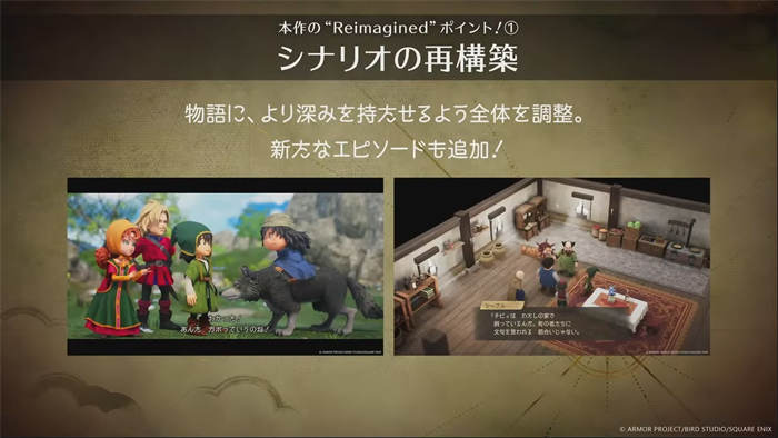SQUARE ENIX 制作,即将于2 月5 日(四)推出的重制版角色扮演游戏《勇者斗恶龙7 Reimagined》(Nintendo Switch 2/Nintendo Switch/PS5/Xbox Series X|S/Steam/Microsoft Store on Windows),总监八木正人与制作人市川毅配合2026 台北国际电玩展来台,接受巴哈姆特GNN 等华文媒体的联访。 《勇者斗恶龙7 Reimagined》是将2000 年发售的《勇者斗恶龙7》透过具有人偶般温暖质感的3D CG 美术风格「人偶风」描绘的完全重制作品。继2013 年的Nintendo 3DS 版、2015 年的iOS / Android 版后,本次推出的全新重制版已经是第4 版《勇者斗恶龙7》。因为居住在孤岛上的少年少女们的微小好奇心,最终展开的这场大冒险,不只是画面,还有剧情、战斗、休闲要素以及系统都彻底重构(Reimagined)。 《勇者斗恶龙7 Reimagined》总监八木正人与制作人市川毅联访 媒体:免费体验版推出之后的反应如何?主要的意见回馈有哪些? 市川:因为开头剧情在玩家当中是非常令人印象深刻且重要的一段剧情,所以我们也是非常紧张地在等待玩家对这次Remake 版的反应。体验版收录的伍德帕,在原作中是以黑暗剧情闻名的部分,这次包含我们重新构建的新剧情在内,得到了广大玩家的认可,我们感到非常高兴。 八木:诚如刚才市川先生所言,我们对序章的故事部分进行了调整,非常担心这点是否能被接受。到底能不能被接受,我们大家其实都感到相当不安和担心。但反应大多非常正面,这让我们松了一口气。 市川:没错。我们也看到很多第一次接触《勇者斗恶龙》玩家的意见。这次为了符合现今时代,我们整体重新架构,在易玩性和提升节奏方面下了很大功夫。这部分也收到了很多玩家的正向意见,我们感到非常欣慰。 媒体:这次《勇者斗恶龙7 Reimagined》相较于与先前《勇者斗恶龙》1、2、3 代的HD-2D 重制版,在制作概念与方向上有什么比较显著的区别呢? 市川:关于1、2、3 代的部分我不便评论,但就7 代而言,视觉上我们致力于表现鸟山明老师笔下可爱的角色设计,并使其符合7 代独特的气氛。 媒体:在重制的过程中,有没有哪一个元素或者是细节是团队从一开始就坚持无论如何都不能改变的呢?以及请问背后的理由是什么? 市川:这次从开发初期就有三个特别投入心力的部分:视觉、故事和战斗。我们从一开始就决定要特别加强重新构建这三项。因为这些是RPG 中玩家体验最核心的部分,所以我们在这三点上投入了非常多的心血。 媒体:《勇者斗恶龙7》以石板探索著称,那这次是如何在保留探索乐趣的同时,取得符合现在玩家习惯比较快速的游玩节奏呢? 八木:我们致力于让取得石板的过程更流畅、不迷路,尽可能让玩家不会感到困惑。还有就是为了方便寻找,我们加入了小地图,并会显示图示来明确告知「就在这里」。 媒体:针对原作中常被提到的节奏缓慢跟重复跑腿的问题,重制版对此做出了哪些调整呢? 市川:从开发初期开始,我们就一直意识到要提升节奏和易玩性。因此,针对玩家觉得活动往返频繁的部分,我们重新构建,使其能以流畅的节奏进行。 媒体:透过刚刚提到的节奏调整以及减少重复来回跑的问题之后,一般玩家大概需要多久可以通关呢? 市川:这取决于玩家的游玩风格,所以无法给出具体时间,但我想比起原作版和3DS 版,我们已经重新构建成节奏更明快的形式了。 八木:节奏虽然变快了,并不代表内容变单薄,玩家依然能享受丰富的游戏内容。 媒体:本作引进了可以同时装备多个职业特技的兼职系统,这项设计最主要的目标是为了要降低难度呢?还是希望可以增加战术深度呢? 八木:这是为了增加战略性。我们让玩家可以尝试多种职业组合,思考并实验各种战斗方式。有些兼职组合可以达到非常平衡的战斗方式,但也有些组合会变成非常偏激、有特色的战法,希望玩家能多方探索。 媒体:在双职业兼职的系统下,团队如何平衡上级职业跟基础职业的关系呢?以及就是基础职业跟上级职业搭配之后,是否会有隐藏版职业羁绊的效果? 市川:关于奖励的部分,这次没有这类设定。不过各职业的咒文和特技都重新架构得更具特色,希望能让玩家享受与以往略有不同的职业系统。上级职业基本上综合实力较高,基本职业虽然综合实力没那么高,但具有比较极端、特殊的补正。所以并不是学会上级职业后就只用上级职就好,透过巧妙结合基本职业,可以产生更多样化的战斗方式。 媒体:随着全语音的加入,像基法跟玛莉贝儿这些经典角色的性格表现力都大幅提升。那在重新编写本作剧本的过程中,是否有意为角色增加更多性格层面或情感描写? 市川:个别剧情的细节涉及剧透,我就不便详述。但整体而言,我们结合了台词和剧本重新构建,让玩家能更容易对各角色产生共鸣。 媒体:本作在部分的短篇故事里面有增加了新的结局走向。这样的设计是希望让玩家有改变遗憾的机会?还是在原作结局不变的状态下补完原作的情感呢? 市川:这部分如果具体回答也会剥夺玩家的乐趣,所以我不便细说。 7 代的故事是由一系列短篇构成的,关于每一段短篇该如何调整,是由堀井(雄二)老师、剧本副总监八木先生等人共同讨论决定的。以体验版包含的伍德帕那为例,我们在维持悲剧主轴的同时,也调整成能让玩家感受到救赎或补完的内容。不过并非全部短篇都如此,这部分请玩家务必亲自体验 媒体:关于基法在本作中的重新登场。请问能够稍微透露他大概会在一个哪一个阶段