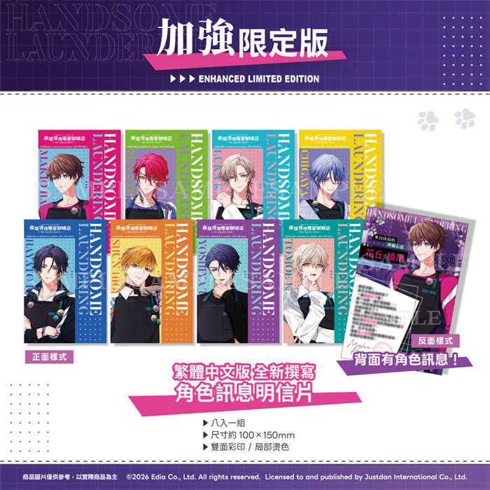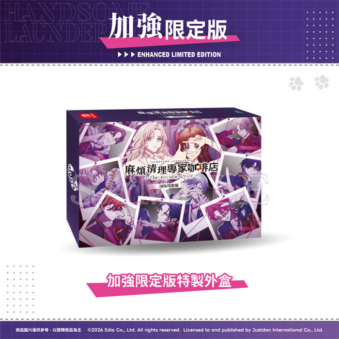 发行、代理商杰仕登今日宣布,由Edia Co., Ltd. 开发的恋爱悬疑冒险游戏《麻烦清理专家咖啡店-the mystic lover-》将在Nintendo Switch 平台推出繁体中文版,并公开初回特典及加强限定版豪华内容物。 在醇厚的咖啡香气中,隐藏着令人心跳加速的危险秘密! 《麻烦清理专家咖啡店-the mystic lover-》结合甜蜜恋爱与悬疑刺激的双重享受,带给玩家崭新的乙女游戏体验。 游戏介绍 本作以罕见的「双女主角」视角,展开两段不同风格的故事内容。牵扯进事件当中的姐妹,踏进了名为「L & L café space」的特别店家。这间店看似只是提供餐饮、洗衣服务的普通复合式店铺,但其实店员会接下秘密委托,暗中替人「洗净」各式各样的棘手麻烦。 主角们将在咖啡香气中,与店内深藏不露的「清理专家」们展开命运的交会。这不仅是一场充满惊奇的解谜日常,更是主角在与心仪对象互助合作中,逐渐让感情升温的浪漫故事。 我们所认知的,是爱?还是恶意—— 位于都会中心的话题名店「L & L café space」。这间店有着众所皆知的传闻—— 「店员会接下秘密委托,帮助陷入困境的人实现愿望。」 在一起事件的因缘际会下,主角敲响了L & L 的大门, 与聚集于此、个性十足的店员们一同解决各式事件…… 于谜团中交织情感,恋爱悬疑冒险故事在此登场。 首次购买奖励 购买首批游戏的玩家,即可获得精心设计的拍立得风角色卡组。让角色们透过精致图像,引导玩家进入「L & L café space」的精彩世界。 加强限定版内容 加强限定版包含加强限定版特制外盒、完整中文化特典小册子、特典广播剧+ BGM 下载卡、A5 海报卡、繁体中文版角色讯息明信片(全新撰写)、Q 版角色邮票造型防水贴纸、手机挂绳夹片,以及角色立牌和亮闪徽章等丰富内容。准备好与各具魅力的「L & L café space」店员们,一起进行神秘委托了吗? Swtich《麻烦清理专家咖啡店-the mystic lover-》一般版 Swtich《麻烦清理专家咖啡店-the mystic lover-》亚中版游戏软体 初回特典:拍立得风角色卡(十入一组) Swtich《麻烦清理专家咖啡店-the mystic lover-》加强限定版 建议售价:新台币3590 元(含税) / 港币838 元