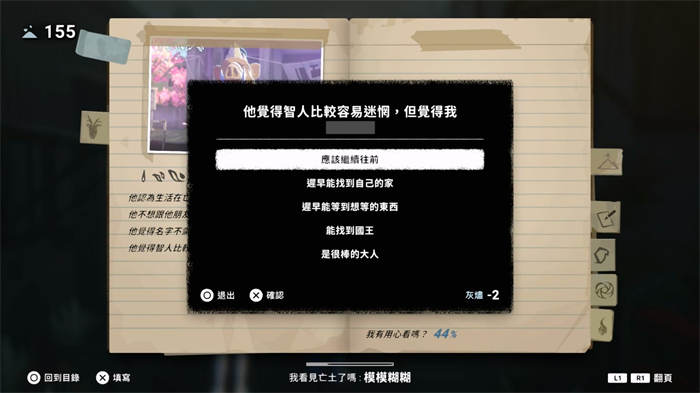 独立游戏团队SIGONO 与集英社游戏共同开发的叙事冒险新作《OPUS:心相吾山》是一款以剧情为导向、具备多重结局的冒险游戏,并即将于4 月16 日正式推出。笔者于上市前获得了正式版本,并花费约8 小时通关普通结局,马上就来和大家分享这趟归乡之旅的最真实心得。 ※本篇试玩内容可能涉及剧透,请玩家自行斟酌观看。 迷失亡土,与神秘少女展开归乡之旅 《OPUS:心相吾山》是款继承《OPUS》系列作品的精神,注重剧情与探索元素的剧情导向的冒险游戏,讲述一段关于自我救赎与告别的内心冒险。玩家要扮演经历了离婚与生意失败等重重挫折的40 岁大叔「陈侑人」,在回乡参加爷爷葬礼的途中,侑人遭遇了一场意外,醒来后竟发现自己身处一个名为「亡土」的神秘世界,并邂逅了一名失去记忆的神秘少女「小涟」,为了寻找回家的路,两人结伴踏上了这趟充满未知与救赎的归乡之旅。 小涟总是能意识到玩家做出的选择 过程中有不少选了就出事的选项,要小心对话别按太快避免按错 以拍照拼凑遗忘的羁绊 在这个不存在人类的「亡土」中,居住着许多失去记忆的动物神灵,举起手中的相机为它们拍照,就能帮助神灵们重拾回忆,这些动物其实就是侑人在现实中相识之人的投影,随着与它们进一步交流,侑人会逐渐回想起与他人共度的回忆和羁绊,因此「拍照」便是本作的核心玩法,也是贯穿剧情的重要关键。 拍照能够帮神灵们想起自己的名字和过去 在游戏的探索过程中,系统并不会给予玩家明确的任务标记,玩家需要观察周遭环境,并向名为「神火炉」的火炉寻求指引,只要拍下神火炉提示的特定照片,就能推进剧情。虽然侑人与小涟结伴同行,但在流程上并没有设计两人合作解谜或过关的要素,只有小涟有时会透过对话,间接引导玩家接下来的行动。 万能的神火炉 神火炉也会给予支线任务,要求拍摄不同的物品或是风景照片,达成的话可以获得小涟的外观道具,以及能够更加了解亡土世界的关键道具。此外,在探索地图时也能搜集到种子,将其交给神火炉就能换取相机镜头、滤镜等摄影配备。 任务提示有点小抽象,但不是不能理解 填写摄影笔记纪录亡土的一切 在亡土中遇到的事物,侑人都会记录在一本「摄影笔记」中,包含与动物们的关系发展、收集要素等内容都会收录在其中。随着笔记的内容逐渐丰富,这个世界的样貌与谜团也会愈加清晰,有部分笔记内容需要我们用填空选答案的方式去完成,算是考验玩家有没有认真在看剧情。 没认真看剧情的话真的会选不出来 拍摄石碑对游戏中的原创文字进行解读 同时,本作采用多结局设计,笔者玩到的是普通结局,看成就列表还有一个真结局可以达成,推测是需要和所有动物都建立一定程度以上的关系,在与动物神灵交流的过程中出现的选项都很关键,玩家的选择会即时显示出对方对侑人的好感度变化。虽然笔者刚开始选错选项时,会用Alt + F4 重开游戏来弥补,但久了还是有点疲惫,因此最终还是没达成真结局。 感觉选哪个都行,很多选项都要考验玩家有没有认真看剧情 破关心得 《心相吾山》虽然不是走极致精致的3D 画面路线,但舒服的美术风格与恰到好处的配乐,很好地烘托了整个故事的情感。本作的一大亮点是加入了中文语音,虽然偶尔会遇到台词不够口语化,或是配音情绪稍稍对不上的小瑕疵,但整体表现依然可圈可点,为剧情的沉浸感加分不少。 相较于前作《OPUS:龙脉常歌》的催泪剧情,笔者觉得本作的剧情风格偏向励志,但系列强项的故事氛围依然营造得十分到位。笔者跟着侑人与小涟在亡土中朝着山顶前进,一路与动物神灵们交流、互相帮助,虽然剧情发展比较好猜,但是角色们的互动情感真挚,体验下来能让人感受到满满的温暖。 与动物们的交流十分温暖 在实际游玩方面,作为核心玩法的摄影因为场景不大,逛一圈基本上都能顺顺拍到神火炉的目标,若只求推进主线并不会遇到卡关的问题。不过,要是想完成全收集、又怕漏掉收集品,常常只能在场景中到处盲拍。中期解锁曝光功能后,还得频繁手动调整照片明暗,拍坏的照片更要一一手动删除,多少会产生一点作业感。 累积了一堆拍太亮太暗的照片要清理 此外,相机虽然给了鱼眼、小光圈、滤镜等丰富配件,但除了收集壁画和石碑必备的「亡土滤镜」外,其余配件多半只是让玩家自由发挥的玩具,在破关流程中基本上派不上用场。 原以为其他滤镜也会用在不同解谜,事实上并没有 主线流程并非只是悠闲地四处拍,剧情中存在着一种名叫「亡」的怪物,制作团队安排了几场被「亡」追击的桥段,甚至有需要利用拍照来对抗的环节,令人印象深刻,成功调剂了偏慢的叙事节奏,为游戏维持了适当的紧张感。 「亡」露出弱点的一瞬间,抓准时机拍下去 若要说游戏的小缺点,大概就是如果有漏掉的收集品,通关后是无法单独补齐的,只能选择特定章节重新游玩,虽然破关后就可以跳过剧情动画,但想到要重头收集一遍,还是会有点懒。 需要装备道具后才能跳过剧情 《OPUS:心相吾山》虽然在游戏性与探索深度上稍显薄弱,但剧情架构完整、情感表达十分细腻,看着心如死灰的主角逐渐重拾与他人的联系,笔者也有被激励的感觉,破关后的余韵相当温暖,如果是剧情派玩家,这款作品值得细细品味! 究竟在山顶有什么东西等待着两人,就请玩家自行体验了 《OPUS:心相吾山》预定于4 
