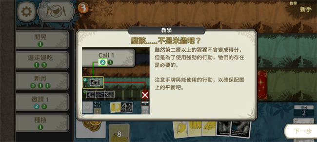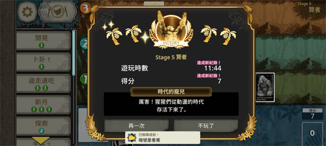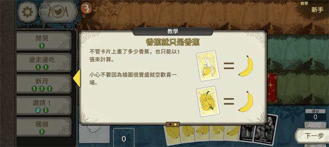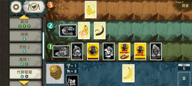 由于这款游戏的规则本身真的不算复杂,所以相信看完上面的描述,大家就都已经能大概理解游戏内容了,与此同时,聪明的你们应该也已经察觉到事情哪里不对劲。就算很顺利地每回合都打出一张猩猩,争取在刚好七回合结束游戏,那总共也得吃掉二十八根香蕉。先不说牌组里根本没有那么多香蕉,在每回合只能抽一张牌的前提下,更是完全不可能凑够这个数量,所以这时候,我们就需要使用「行动」这个系统了。 行动的概念有点像是指派场上的猩猩去做事,行动的效果越强,就会需要横置越多数量的猩猩,并且可能还需要有高阶级的猩猩在其中。比如发动代价只需要一只1阶猩猩的「卜卦1」,就只能做到看牌顶的牌,然后决定要放回去还是移动到牌堆最底而已,虽然这个行动在有搭配或战术的前提下存在它的用途,不过终究不是那么直观的有用;与之相较,需要一只4阶猩猩才能使用的「烹饪4」,可以把一根香蕉换成四根虚拟香蕉(虚拟香蕉等同于香蕉,不过不能留存到下回合,当回合没用完就浪费了),相当于把一根香蕉变成四根,这就属于任何人都看得出来的强大了。 话又说回来,虚拟香蕉到底是什么概念 |整体难度是真的很高:;(∩´﹏`∩);:| 看到这里,或许你会以为本作的难度并不高,只要合理活用「行动」,就能不花费太多心力过关。当然,某种程度上这样的想法并没有错,确实当摸透每种行动的效益跟彼此间的搭配可能后,要通关(不考虑分数)便再也没有难度,然而,这件事说起来很简单,执行起来却是非常困难的。 举例来说,使用高阶级猩猩的行动固然效果强力,但高阶级猩猩的维持代价也是很高的,因此并不能完全依仗高阶级的行动。比如前面讲的「烹饪4」,虽然可以让单张香蕉牌的效益*4,不过要想在第四阶层摆放猩猩,就得至少在第二层与第三层摆放共计5张牌,既便扣除其中通常存在的一些「种植园」(靠行动种出的香蕉树),往往猩猩还是会占到三只以上,构成额外的消耗,要拿捏这之间的平衡不容易。 再来是抽牌跟滤牌相关的行动,在一般的卡牌游戏中,抽滤通常没有任何坏处,但在本作里面,过度的抽滤非常可能导致牌组减少太快,进而在摆上足够的猩猩前就因抽干而败北。像「边走边吃」这个行动就属于前期的一个大陷阱,只要两只1阶猩猩就能同时做到确保香蕉跟补牌,新手根本抵抗不了诱惑,然后就会因为用太多次而陷入慢性败北,非常可怕。 最后,很多行动的用途都是需要对游戏有一定的理解后才能掌握的,并且没有足够的敏感度便会很容易错过那些其实大有用处的行动。前面提过的「卜卦1」就是很好的例子,个鱼一开始完全不明白这能干麻,后来才发现,这个行动可以把香蕉尽可能沉底,只要再搭配「代罪猩猩」(把地面层的猩猩弃掉换成虚拟香蕉)拖回合,就能够让牌组只剩下刚好数量的猩猩,然后后面抽起来的都只会是香蕉,构成一种很简单好操作的胜利方程式。 总之,《大猩猩接龙》的眉角多得可怕,上面讲的可能没有到只占冰山一角那么夸张,但应该也只是个冰山一半(?)。也因为这样,本作的整体难度确实非常不低,不说以追求高分为目的的普通模式,光是理论上相对简单的任务模式,就足够让玩家头疼了。甚至如果你对这种游戏比较没感觉,抓不住窍门,那么连任务模式第一关都过不去也不奇怪,只能说入坑前真的是得有一定的心理准备会比较好。 要平衡管理层(?)与现场工作者(?)真是不容易呢 |不想付钱可能也不是不行ξ( ✿>◡❛)| 最后的最后,如果你是安卓或者苹果的玩家,你可能会好奇有没有需要加购完整版的内容,还是只玩基本版也可以。关于这个问题呢,首先就必须先提到基本版跟付费版的差异。相对于付费版,基本版就是只能每天有次数限制地玩普通模式,所以没办法看到任务模式中的剧情,并且也不能解锁最高阶的行动「究级艺术」们,整体乐趣确实会有一定缩减。 不过换另一种想法是,假如你没有真的很爱这套玩法,会一天想玩很多次,同时又对故事、究级艺术这些其实比较Bonus性质的内容没有太大兴趣,那么免费版倒也很够满足需求,顶多最一开始的阶段会有点觉得玩不够,后面多半就会觉得还好了。当然,可以的话还是建议稍微小小付费一下,支持这款有趣的游戏,但这就看个人的选择了。 可以的话还是推荐付费啦,毕竟从任务模式循序渐进会让游戏体验更好一些 ∥总结(゚-゚ミэ)Э 总的来说,《大猩猩接龙》绝对算是一款很特别的单人卡牌小品,从主题到玩法都很有趣,美术不能说突出,但至少也在标准之上,唯独玩法难度的偏高以及后期内容的局限(几乎只能无尽的拼榜)是比较关键的短版。整体上如果你喜欢奇怪(?)主题的游戏,或者你是单人卡牌游戏的爱好者,都很适合给这款游戏一个机会。 |